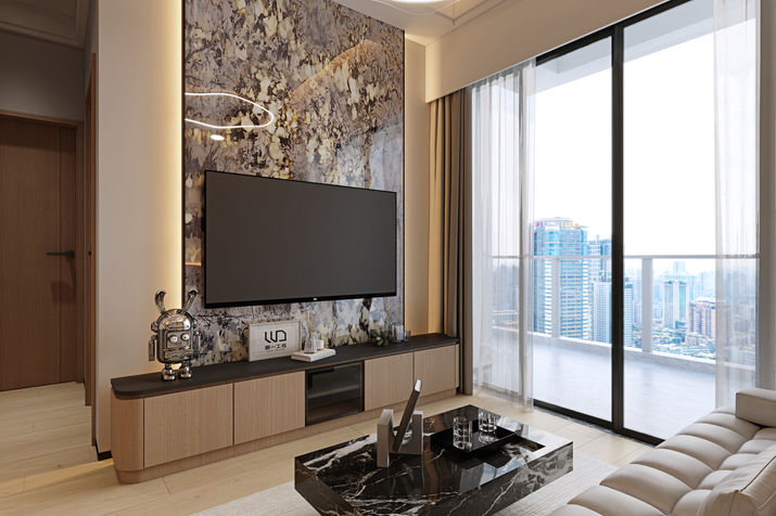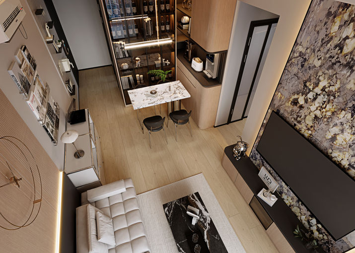 木紋磚和木色高櫃🪵,縱享平靜之中的純淨與安心;🔘淺灰色渲染牆身和傢俬,縱享低飽和度中的簡潔與樸素
